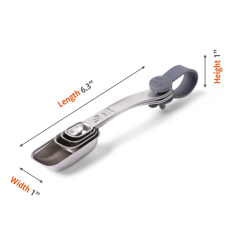Full Circle Skinny Dip Stainless Steel Measuring Spoons – 4-Piece Set with Storage Tether – Innovative Scoop Design for Spice Jars, Cooking, & Baking – Dishwasher Safe