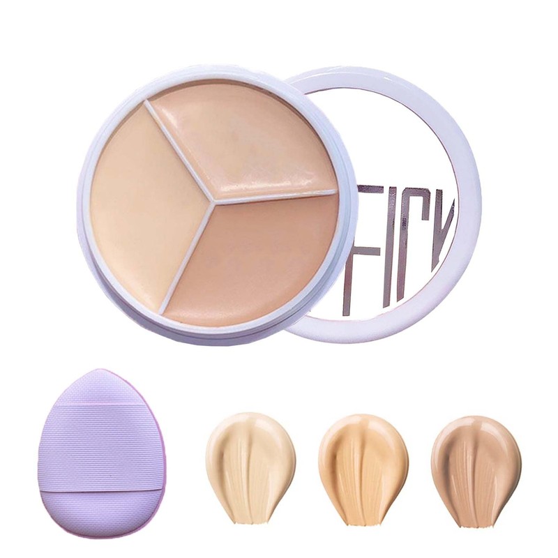 Full Cover Concealer Palette, 3-in-1 Concealer Cream, 3 Colours Concealer Contour with Brush, Corrects Dark Circles Red Marks & Softens Fine Lines, Highlight Contours (3 Colours + Puff)