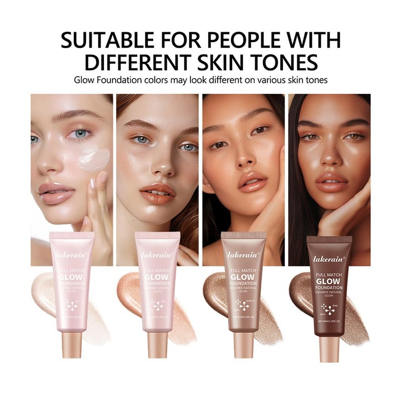 Full Coverage Glow Foundation, Liquid Highlighter Natural Glowing, Shimmer Face Body Glow Makeup, Glitter Brightens Liquid Glow Highlighter Foundation (# 03, Color)
