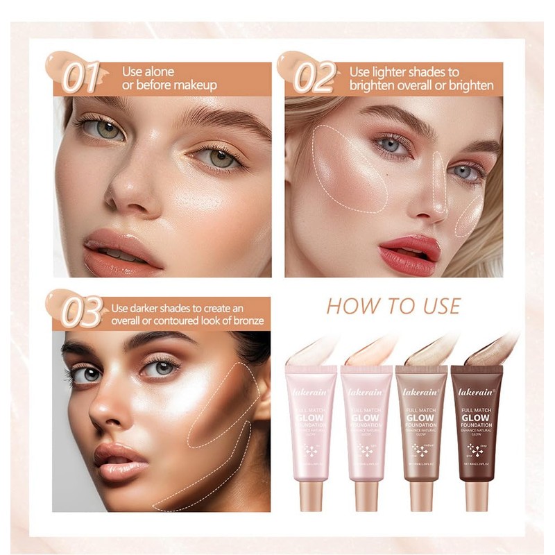 - 【Full Coverage Foundation】 A foundation-and-highlighterin one which can easily cover acne marks, freckles, wrinkles, giving you a natural glow and glamorous makeup that lasts all day.