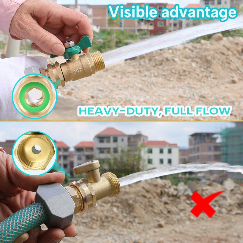 - Full flow design - Upgraded to 15mm large ball core, 0.67" full port, 40% more water flow than brass valves, do more in less time!