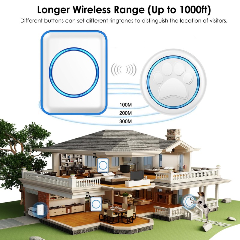 - [Long-Range and Customizable] - Operating range is 1000+ feet in open area. The receiver offers a selection of 52 different ringtone options, and adjustable volume ranging from 0 to 110 decibels. You can easily add or remove receivers and customize a unique ringtone for each button.