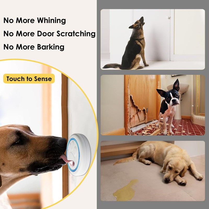 - [Touch Sensing] - Just touch the button lightly and our smart dog bell will react. Any puppy or big dog can do it, even a cat. This means that your pet can easily communicate their needs instead of scratching, barking, or whining.