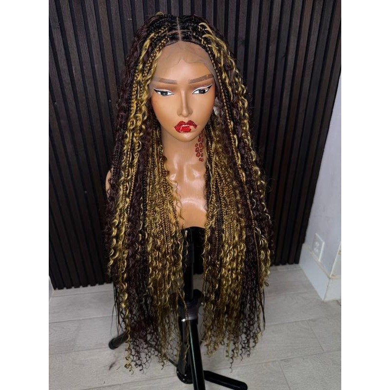 Full Lace Brown and Honey Blonde Two Tone Bobo Knotless Braided Wig for Immediate Delivery
