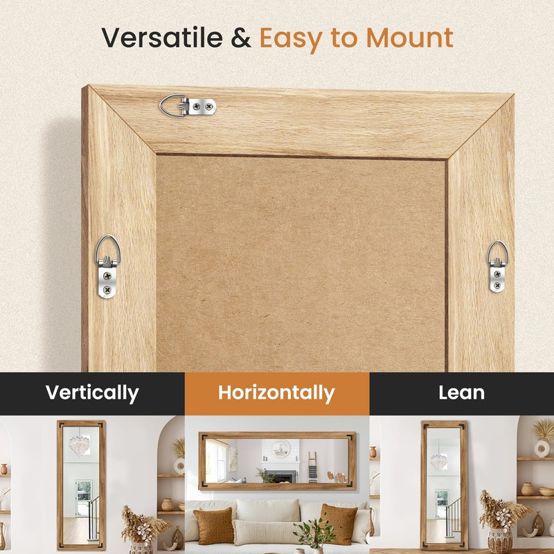 - High-Quality Craftsmanship: Our mirror frame is crafted from premium, solid wood, ensuring its durability and longevity. Built to last, this mirror features a premium 5mm silver-backed glass that ensures HD clarity with no distortion. The explosion-proof and scatter-prevention design provides added safety, making it a reliable choice for any home.