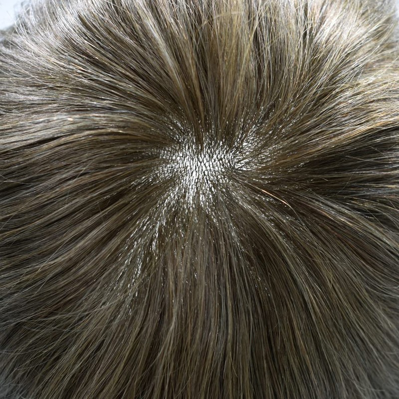 - Good quality hair replacement unit. This men hair unit base size is 8''X10'' Width(side to side) X Length( front to back) ,can be cut the unit to fit your head. All hair has V-looped knots to keep your real hair line natural appearance, make sure your hairline is invisible.Perfectly solves the troubles caused by men's hair loss.