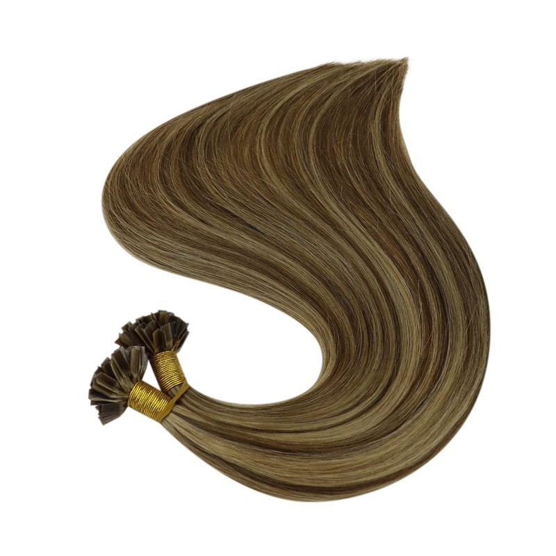 Full Shine Brown And Blonde Ktip Hair Extensions Human Hair Color 4P27 Highlighted Hair Extensions Human Hair 18 Inch Ktip Prebonded Human Hair Extensions 50 Gram Natural Remy Hair for Women