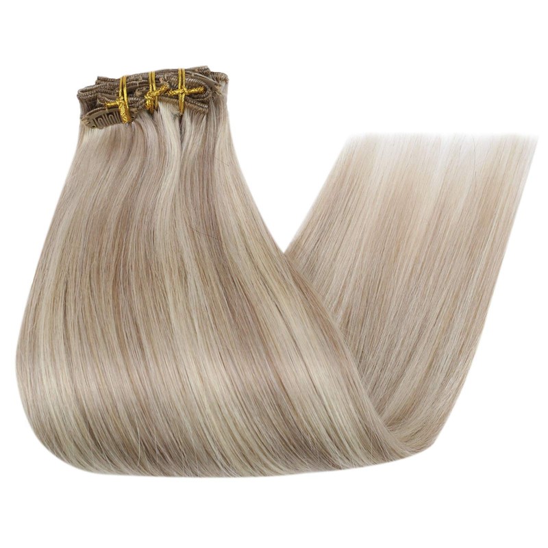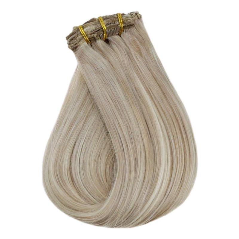 Full Shine Clip in Hair Extensions 16 Inch Color 18 Ash Blonde Highlight with 613 Bleach Blonde Clip in Straight Hair Extensions 100 Gram 7 Pcs Extensions Clip in Real Hair