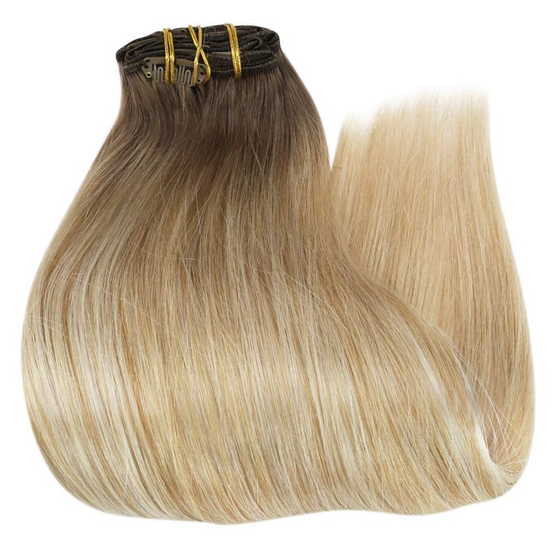 Full Shine Clip in Hair Extensions Real Human Hair Extensions 22 Inch Silky Straight Human Hair 120 Grams Color 6/27/60 Ombre Balayage Blonde Hair Extensions Clip ins 7 Pieces