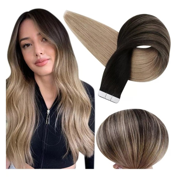 Extensiones de Cinta en el Pelo Negro Ombre 16 Pulgadas Extensiones de Cinta en el Pelo Ombre Cabello Humano Negro Mujeres 50g 20 Piezas Cinta de Trama en el Pelo Extensiones de Cabello Humano #1b/18