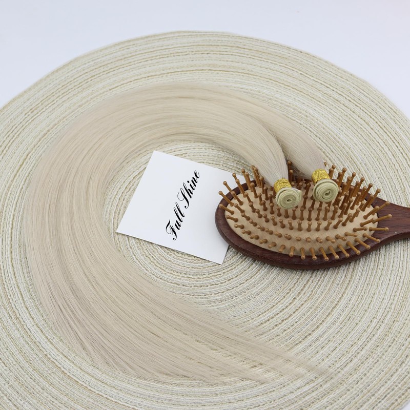 Full Shine Genius Weft Hair Extensions Hand Tied Weft Human Hair Extensions Color White Blonde Hair Extensions Hand Tied Weft Human Hair Extensions Remy Straight Hair Weft Extensions 18 Inch 80G