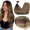 Full Shine U Tip Hair Extensions 16 Inch Ktip Human Hair Extensions Color 2 Dark Brown Fading To 3 Medium Brown Highlight 27 Blonde Balayage Natural Soft Remy 50G/50S Add Volume