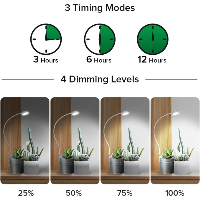 - Smart Timer Settings: Enjoy hassle-free plant care with our built-in 3/6/12-hour auto on/off timer, alongside four dimming levels to perfectly match your plants' light requirements.