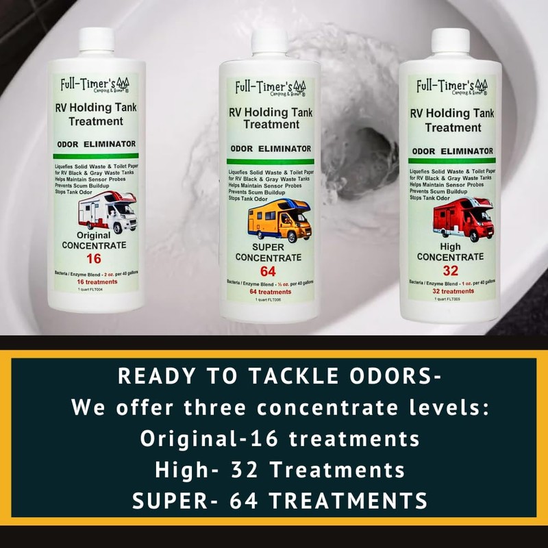 - Tailored Treatment Strength: Select from Original, Super, or High concentration levels for your RV tank needs. Each option provides a specific number of treatments, with higher concentrations offering more applications per bottle. Optimize your odor control routine with a customized solution designed for efficiency and effectiveness.