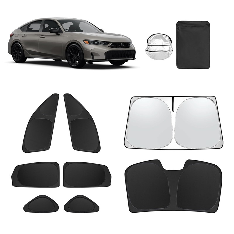 Full Window Sunshade for 2022-2025 11th Gen Honda Civic,Windshield Side Triangular Rear Window Windscreen Shield Cover Sun Blocking, Heat Shield & UV Protection