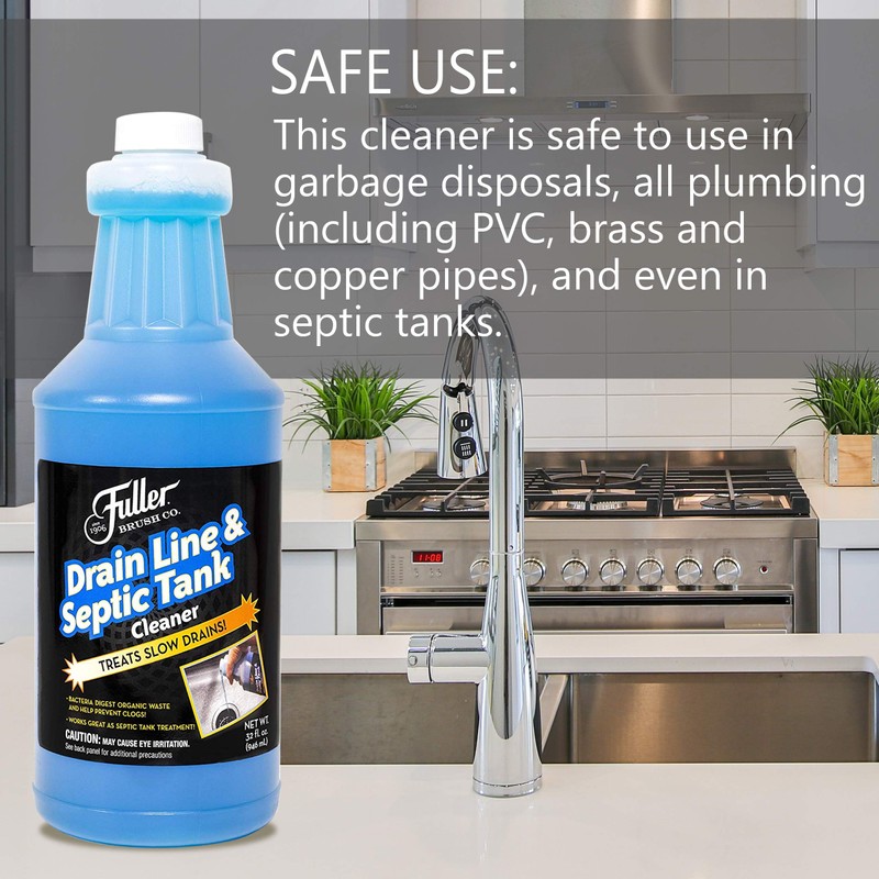 - Safe Use: This Fuller Brush Drain Line & Septic Tank Cleaner is safe to use in garbage disposals, all plumbing (including PVC, brass and copper pipes), and even in septic tanks.