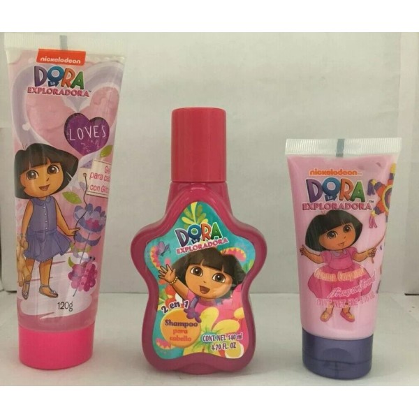 FULLER COSMETICS Dora la exploradora SET 3 PIEZAS SHAMPOO 2 en 1 GEL PARA CABELLO- CREMA CORPORAL