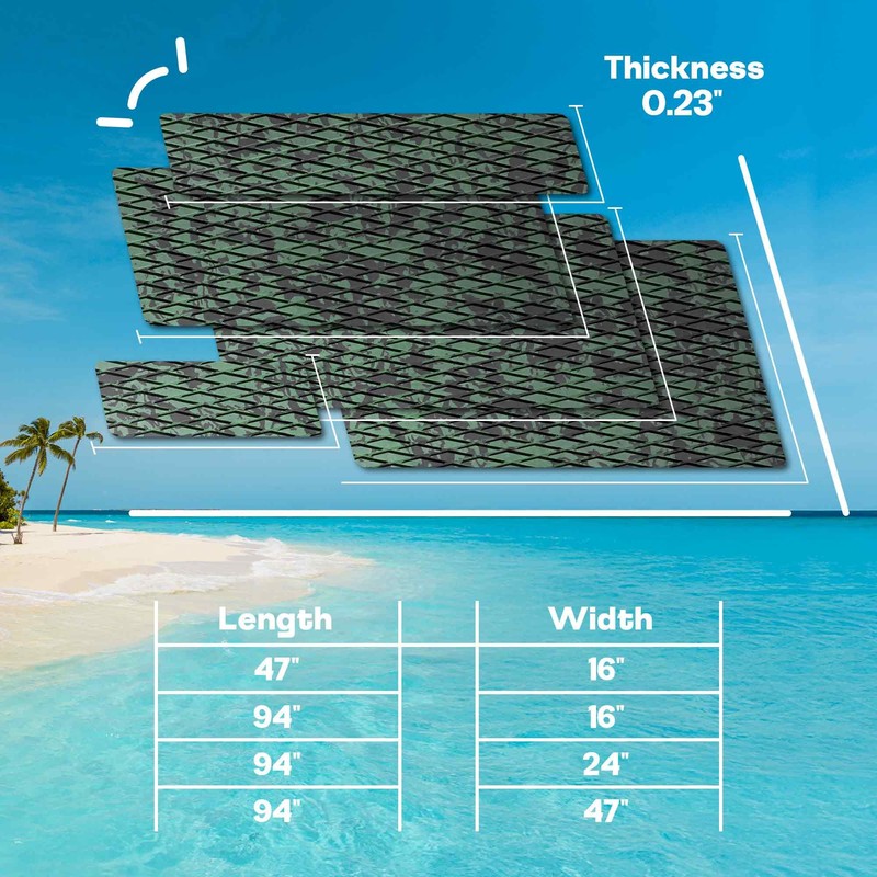 - Easy Installation - Our EVA foam boat mat can be easily cut down to fit on the floor of your boat, they are very easy to clean and maintain, you can just use towel or vacuum cleaner to directly wash it. Just be minded that the 3M self-adhesive backing is pretty strong and durable, please measure the size exactly before use the vinyl boat flooring