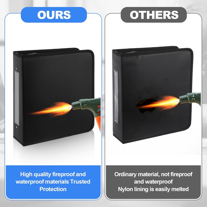 - Fireproof and Waterproof Protection: our fireproof 3 ring binder is ideal for those moments when you need the protection for your documents; Made from anti static double layered non itchy silicone coated fiberglass, this binder is not only capable of withstanding extreme situations but also holds strong against water, thanks to its waterproof attributes; For added security, it is incorporated with a fireproof zipper making your documents safer in most conditions