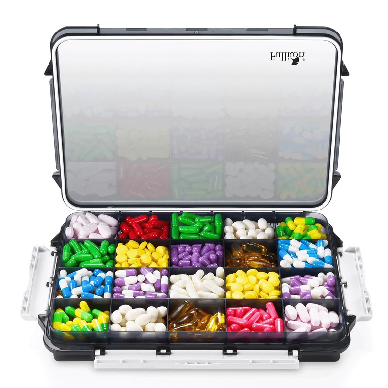 - 【Large Capacity】Our pill case has 20 compartments to store up to 27 large fish oil or 60 #0 capsules per compartment, allowing you to manage and organize your medicine easily