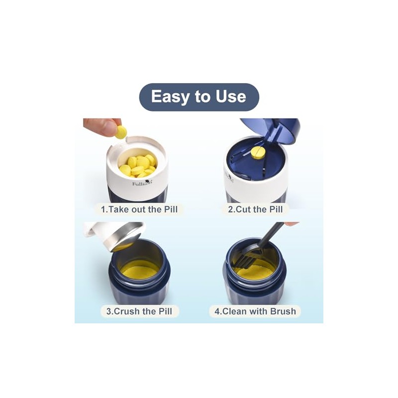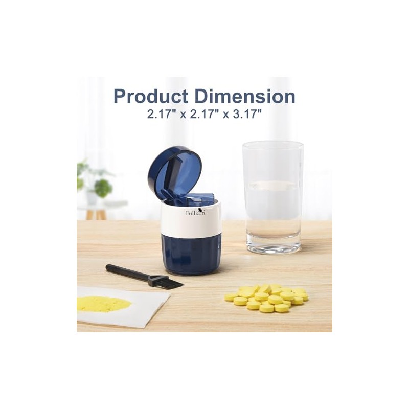 Fullicon Fullicon 3 in 1 Pill Crusher for Tablets with Stainless Steel Grinding Head, Tablet Crusher for Pills & Pet, Pill Grinder with Storage, Pill Cutter Splitter with Free Brush (Indigo)