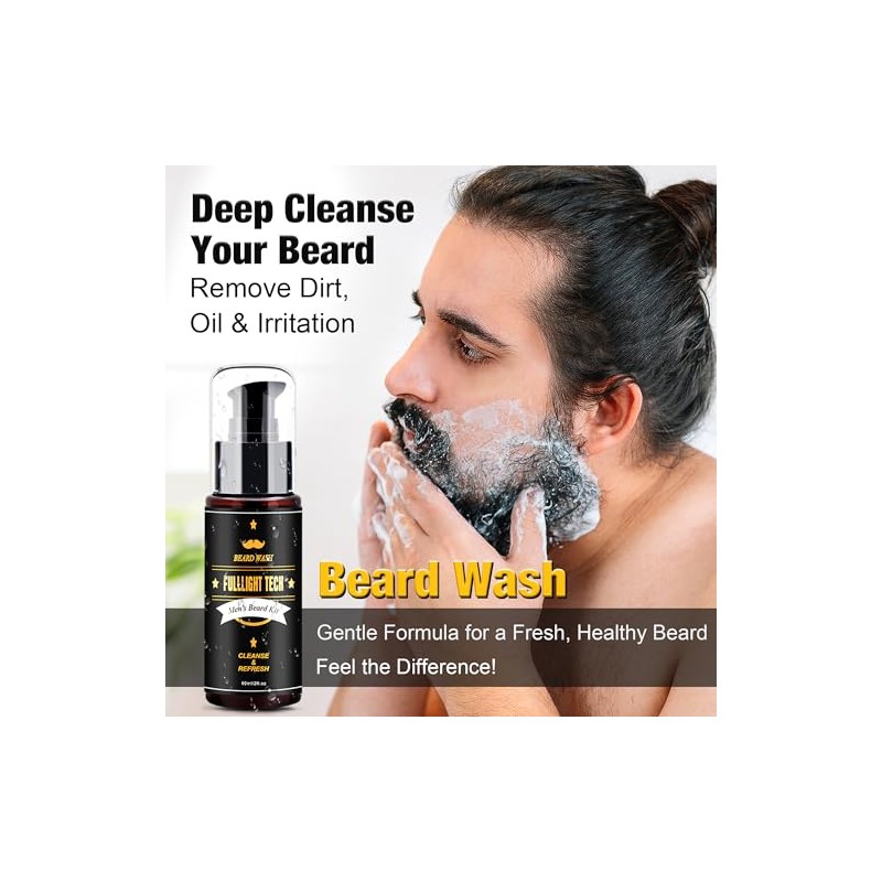 🌟 ⭐ FullLight Tech Kit para Barba 60ml y 3x20ml Aceite - Nutrición - Regeneración - Fortalecimiento - Hecho en USA ⭐ 🌟
