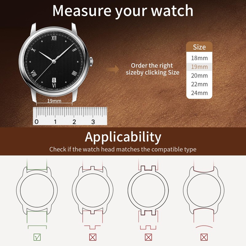 - Note: Don’t choose the wrong size: 5 sizes(18mm, 19mm, 20mm,21mm, 22mm, 24mm) for you to choose from. Length-200mm. Owns a large compatibility for quartz watches, mechanical watches or smartwatches. Please check your lug width before purchase, the compatible watch types see description below.
