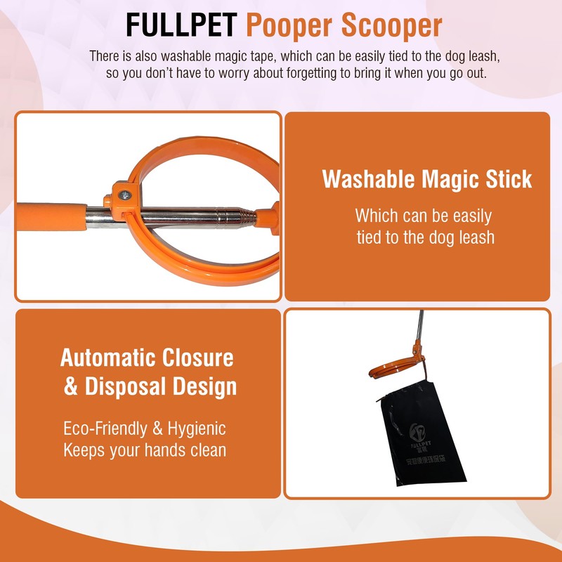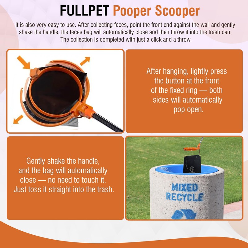 FULLPET Pooper Scooper, Pooper Scooper with Bag Attachment (Orange, 50 Bags)