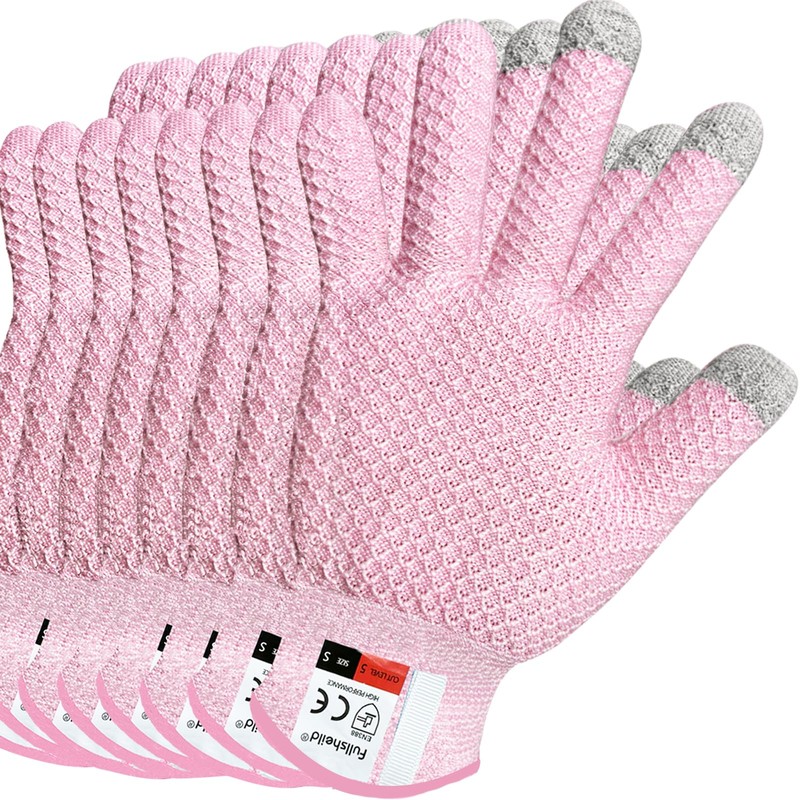 Fullsheild 4 Pairs Cut Resistant Gloves Level 5 Protection, Kitchen, Upgrade Food Grade Anti Cutting Gloves with Touch-screen, Medium, Pink