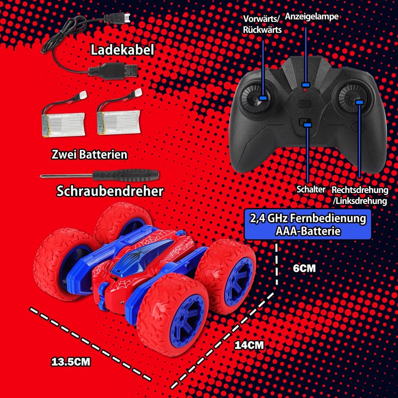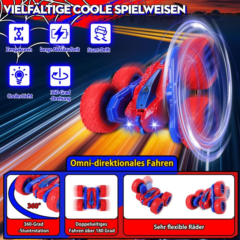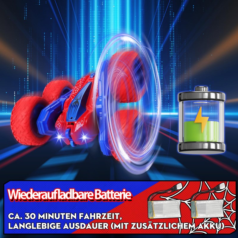 Fullware Spider Ferngesteuert Auto 2 Batterien, RC Auto ab 3 4 5 6 7 8 Jahre, Drift Car Offroad Flexibler Reifen 360°Drehungen 180°Filpps LED-Lichtern, Jungen Spielzeug Geburtstag Geschenk