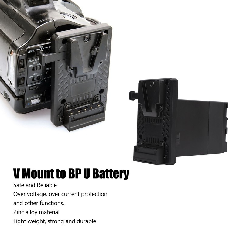 1、Designed for BP U Series: Convert the V mount battery to the BP U series battery power supply switching system, such as BP U90 BP U96 BP U60 BP U30, to extend the working time of the camera. 2、Wide Compatibility: Full decoding battery interface is suitable for Sony cameras using BP U series batteries. Support 14‑16.8V input voltage, 14.8V output voltage. 3、Quick to Assemble: The black quick release button is designed to easily press the lock catch , allowing you to quickly disassemble and assemble the battery in a few seconds, while preventing the battery from accidentally slipping. 4、Safe to Use: BP U dummy battery has built in full decoding chip and protection circuit, which has high conversion efficiency, overvoltage, overcurrent protection and other functions. 5、Durable and Long Lasting: Made of zinc alloy and ABS materials, our battery adapter is durable, light in weight and long in service life.