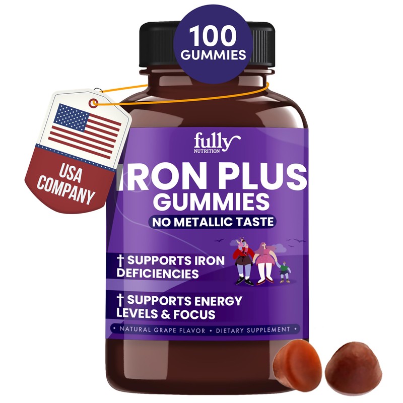 FULLY NUTRITION Iron Gummies Supplements for Adults (Women, Men) and Kids C Grape Flavor- Supports Anemia, Energy and Focus Levels C 100 Count