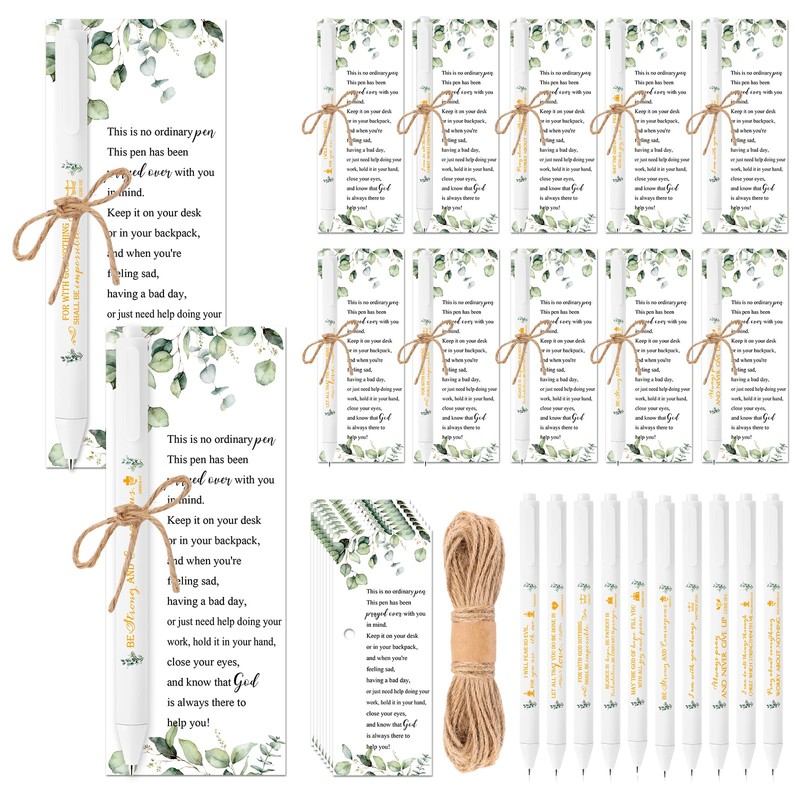 - Large Quantity: there are 50 pieces of Bible inspirational pens in 10 different styles, each with 5 pieces; Besides, there is a bundle of twine and 50 pieces of cards with hole, enough quantity to meet your daily use and replacement needs; You can also share with your family and friends