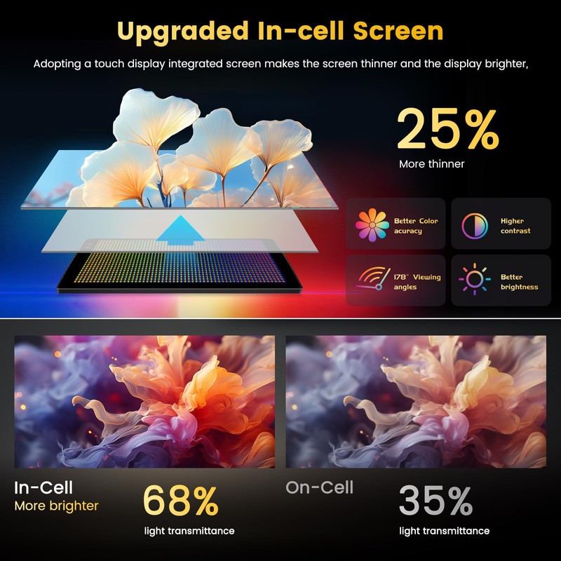 - Android System & In-cell Touch Screen: Lastest Android stereo features 4 GB RAM + 64 GB ROM for seamless split-screen navigation and smooth video playback. The 9-inch In-cell screen integrates touch and display into one layer, reducing thickness by 25%, supporting pixel-level touch control with instant response, and improving sunlight visibility by 30%