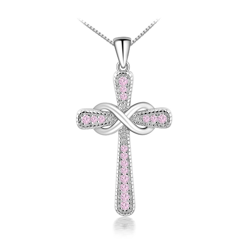 FULULAY Infinity Cross Necklace For Women,925 Sterling Silver With Created Sapphire/Ruby/Emerald/Amethyst/Garnet/Aquamarine/Cubic Zirconia/Crystal October Birthstone Pendant