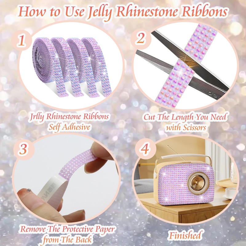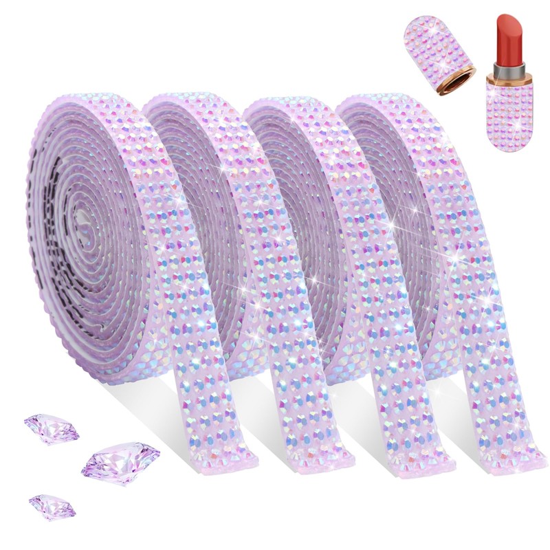 - Package And Dimension:You Will Receive 4 Rolls Light Purple AB Crystal Rhinestone Ribbon Stickers with 2 mm Jelly Gems on It.Each Diamond Ribbon Is 1 Yard,4 Rolls 4 Yards in Total.The Sufficient Quantity Can Meet Your DIY Design Need