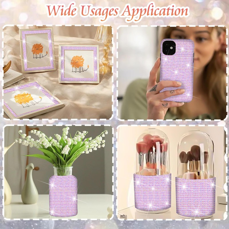 💎Wide Application:These Light Purple AB Adhesive Rhinestone Strips Are Not Only Suitable for Decoration Crafts,But Also Can Suitable to Decorate Car,Clothes,Shoes,Vase,Lipsticks,Phone Case,Wedding Dress,Greeting Cards,Gifts,Ect.There Are More Usages Waiting for You to Develop.