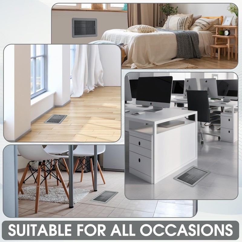 - Rust Proof Tough Finish: the floor vent covers for home is made of quality aluminum alloy, suitable for air conditioning, thermal and systems; The floor register surface has sprayed rust proof pre coat, your floor grille will stay pristine in every environment
