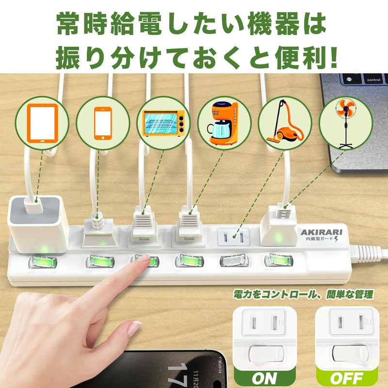 - ★ INDIVIDUAL SWITCH ★ This table tap has a separate switch for each outlet. This allows you to easily turn off your unused device and reduce wasted power. For example, you can turn your device off in bulk before you sleep at night, or just select and turn on the device you use. This will help you save on energy bills and use ecology in mind