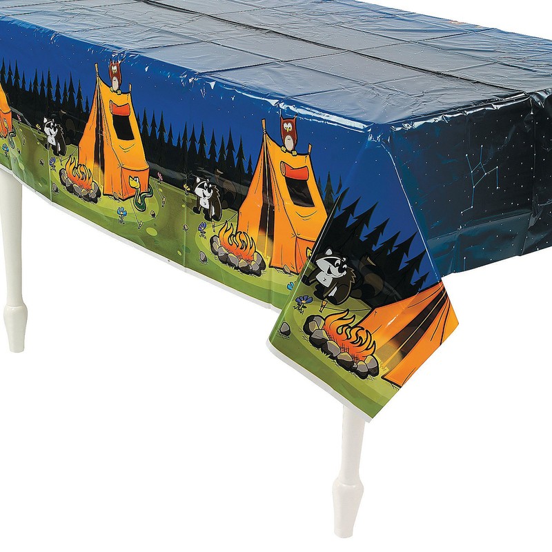 "When you can't explore the great outdoors bring the great outdoors to you with our colorful array of Camp Adventure party supplies. Patterned with cheerful forest critters exploring a campsite this fun tablecloth makes a perfect addition for enhancing this unforgettable camp theme. Decorate treat tables gift tables and more with a look that is sure to help create a birthday party full of happy campers. Shop our full selection of table covers online. OTC Plastic. Disposable. 54 x 102"