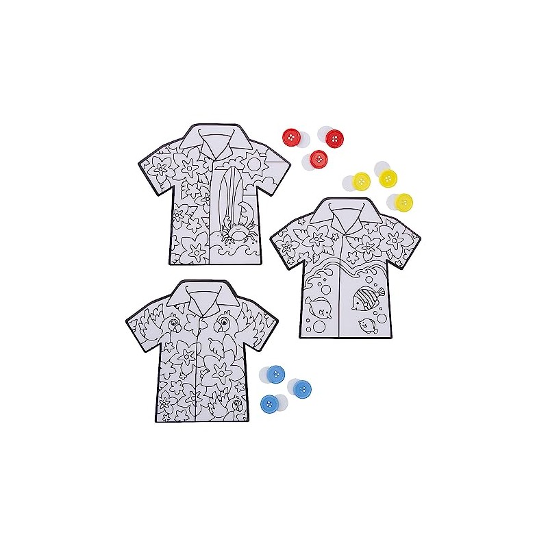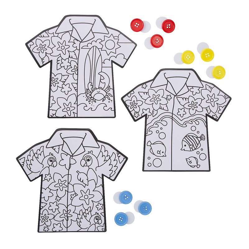 Fun Express Color Your Own Hawaiian Shirts with Buttons Craft Kit Makes 12