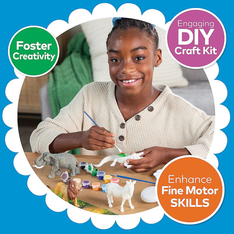 Fun Express DIY Wild Animal Scultpure Painting Kit, All in One Kids Craft Kit, Birthday and Everday Gifts, Great for Creative Acitivity for Home and School