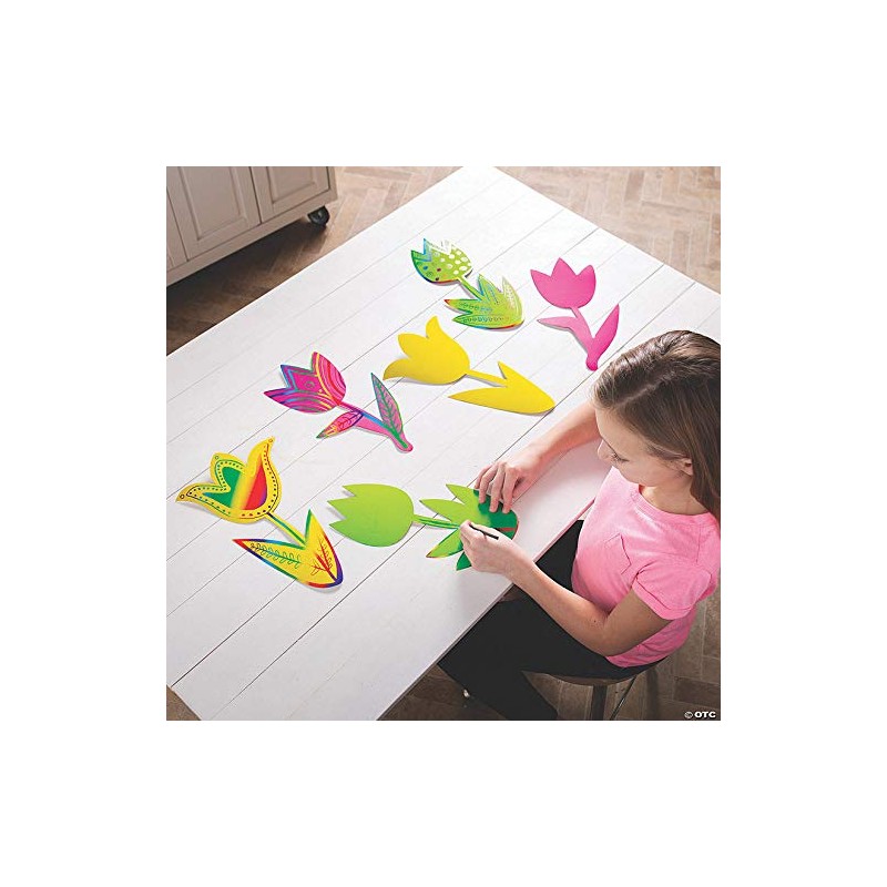 Fun Express Jumbo Tulip Magic Scratch - Includes 12 Shapes and 6 Scratching Tools - Spring Crafts