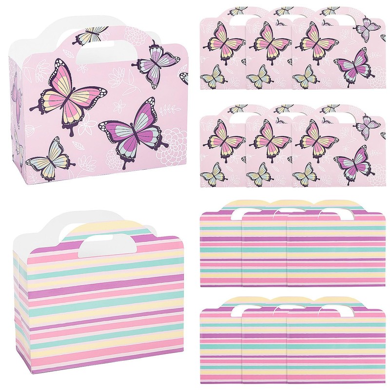 Fun Express Large Butterfly & Pastel Stripe Cardstock Gift Bags with Cutout Handles - 12 Pc
