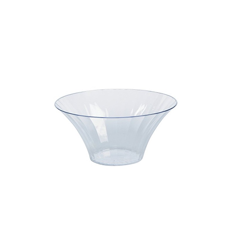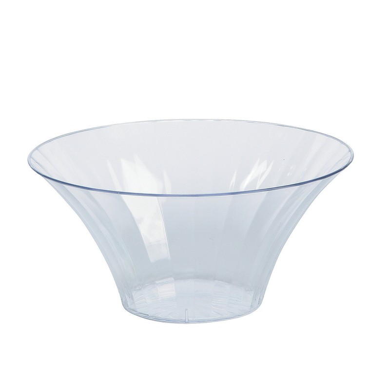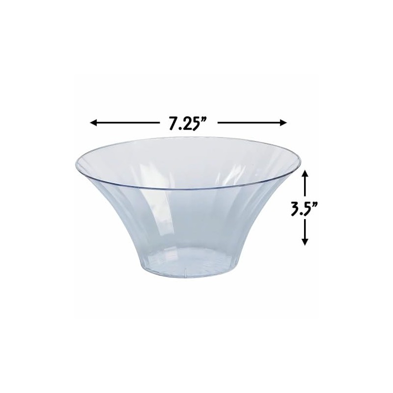- Great for punches, candy buffets at your wedding reception or party mixes, these Medium Flared Bowls provide easy elegance and easy clean up. With a clear finish, these bowls are sure to match all your party decorations and party supplies. After the party, use as popcorn bowls for family movie night or as salad bowls for dinner parties. Plastic. (3 pcs per unit) 3 1/2" x 7 1/4" diam.