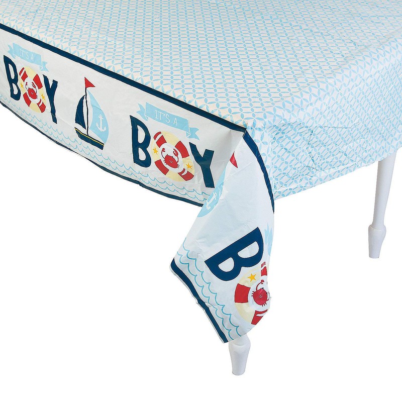 Fun Express Nautical Boy Baby Shower Plastic Tablecloth - Party Supplies - 1 Piece