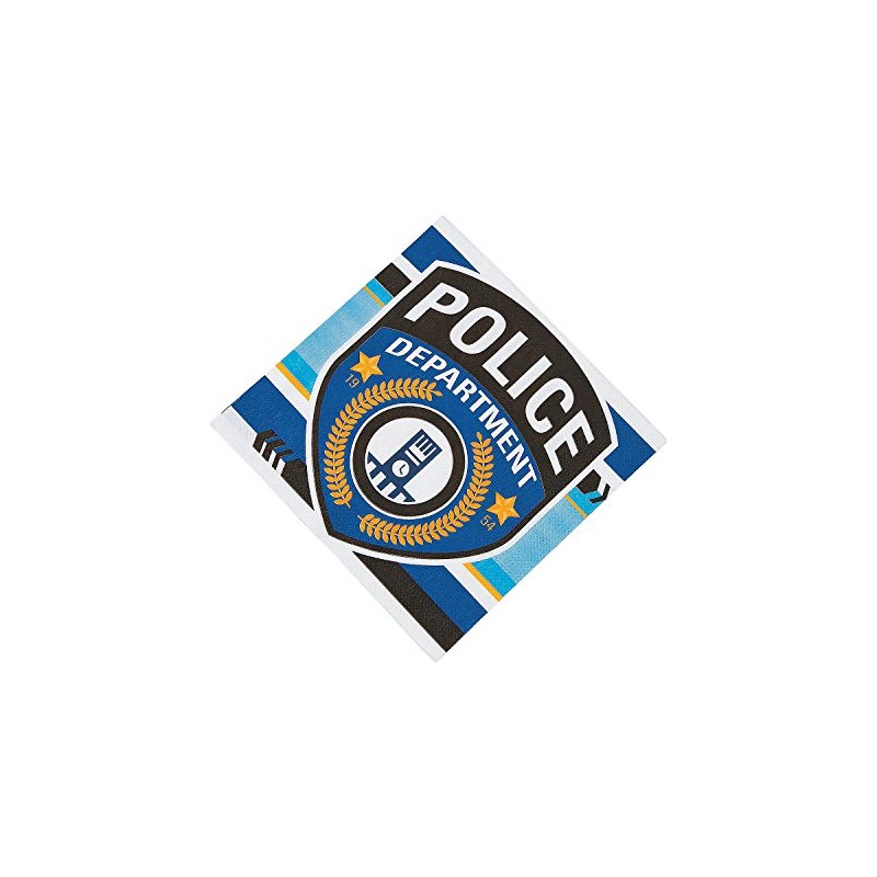 - Patrol for party fouls with these Police Party Luncheon Napkins. A must-have addition to your police party supplies, these paper napkins come printed in black and blue with a police badge on each. Set them on your party tables for easy access when an emergency calls. To complete this theme, find our entire collection of Police party decorations on our website. Paper. (16 pcs per unit) 13" OTC