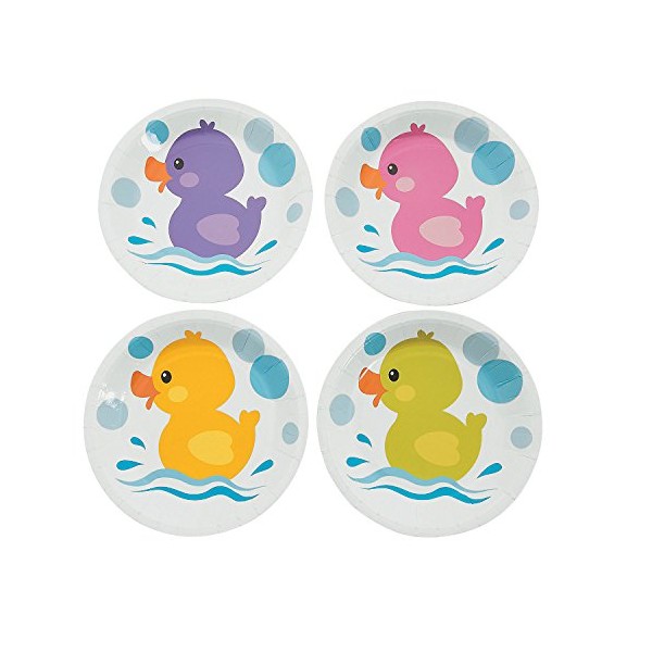 Fun Express Rubber Ducky Paper Dessert Plates - Duck Themed Tableware Paper Plates - Decoration Supplies for Baby Shower Bridal Shower Wedding - Tableware Supplies - 8 Pieces