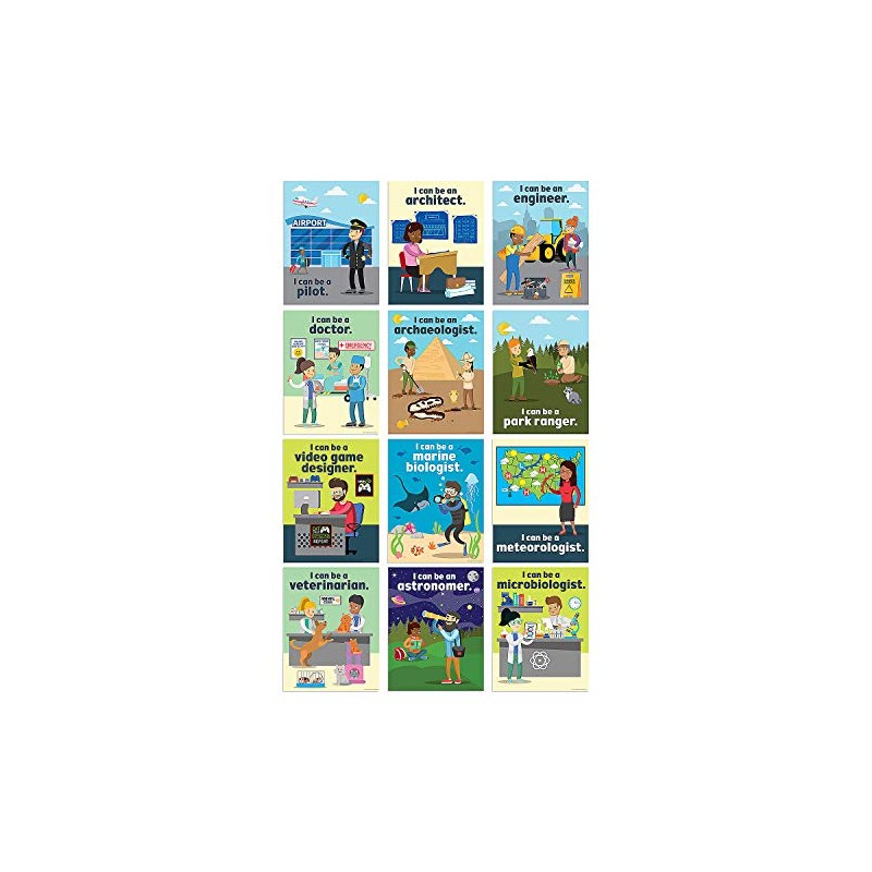 Fun Express STEAM Career Posters, 12 Science, Technology, Engineering, and Math Poster Set - Classroom Decoratiions