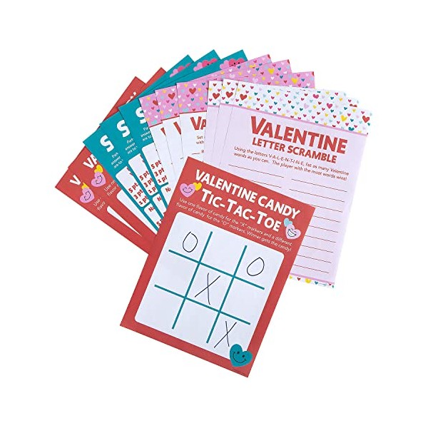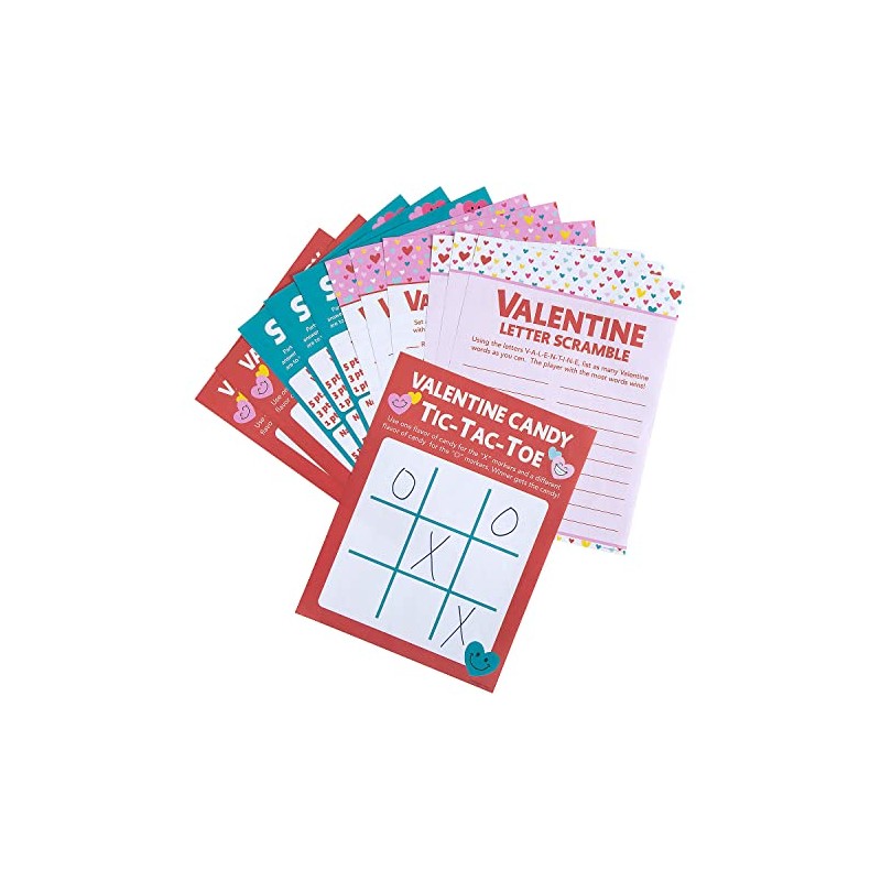 - Your Valentine’s Day party guests will love playing these party games! Complete with four different games and 24 sheets per game, this game kit makes a great at-home or classroom Valentine party activity. Paper. (24 sheets per game; 4 games per unit) 8 1/2" x 11" Assortment may vary.